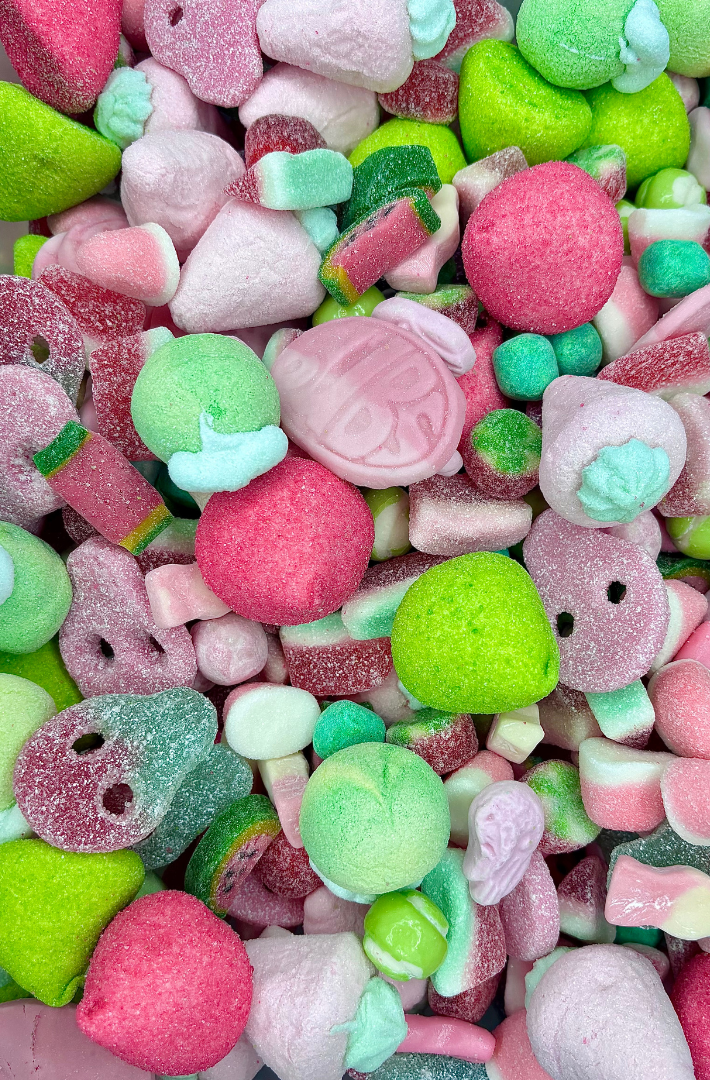 Step into a world of colour and flavour with our Wicked Pink & Green Mix – a magical blend of your favourite retro and modern pick ’n’ mix sweets. Bursting with bold pink and vibrant green treats, this mix is as eye-catching as it is delicious.